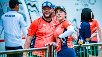 In the battle for bronze OLSZEWSKA went 4-2 up aganst BYAMBASUREN and needed a 9 from her final arrow to take the match. She took her time and landed a perfect 10, dead centre, to clinch third place.