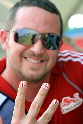 On the Union Jack pattern painted on the fingernails of his right hand: