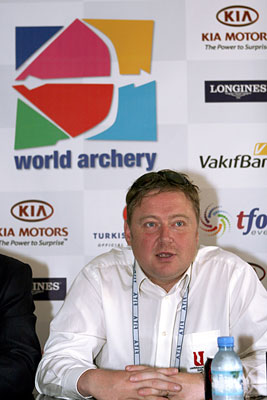 PRESS RELEASE   Lausanne (SUI) / Antalya (TUR) – 2 June 2009   Launch of World Archery   On the occasion of the Archery World Cup stage in Antalya (TUR) this week, the International Archery Federation (FITA) officially launches its new brand and logo – World Archery.   World Archery is a forward-focused brand representing the sport of archery to both sports enthusiasts and the worldwide market beyond the archery family. The federation wants the sport of archery to be in the forefront—a global consumer brand, that promotes archery at every level with enthusiasm and passion.   Represented by the new, dynamic logo, the World Archery brand unifies all of the activities, events, and members of the federation under one brand name to be centrally promoted by FITA and its Continental Associations. The FITA entity and logo remain valid as the producer of this brand. The World Archery logo will be used at upcoming events such as the Youth, Para-Archery and World Archery Championships.      FITA Secretary General Tom DIELEN    at the press conference in AntalyaThe vibrant colours, a fundamental characteristic of the World Archery logo, reflect its bright and modern attitude while building all-important recognition. Following best business practices from the corporate world, FITA understands that the immense value of strong branding cannot be over emphasized, especially today. The new brand—World Archery—was developed with the strategic cooperation of TSE Consulting; former Saatchi and Saatchi designer Nick DARKE designed the logo.   FITA President, Prof Dr Ugur ERDENER, said: “FITA is among the first of the international sport federations to create a consumer brand for its sport. We believe it is very important that all archery activities be unified with one brand name. The purpose is simply to make archery stronger worldwide.”   The World Archery brand, established primarily to promote the sport of archery to a broad target market around the world, is the result of the Archery World Plan that developed a clear definition of the values and image of international archery. Built on values such as heritage and harmony, the essential modern image of the sport encompasses mind, body and technology. There are two key words that best express the core of the World Archery brand: precision and intensity.   The development of the new brand demonstrates FITA’s drive and ambition for development. The World Archery brand is one of the first of many exciting developments that will come from the archery community in the next few years. The federation has taken the lead in focusing on the archery brand to ensure the sport remains competitive in today’s market.   For more information, please contact FITA at: info@archery.org.   Didier MIEVILLE FITA Communication