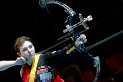 Two victories for France in Nimes Lausanne – 26 January 2009   The 12th edition of the European Indoor Tournament in Nimes (FRA) delivered the goods. A participation record with 1,100 athletes from 26 nations, an archery showroom filled up for three days, a true show during the final matches and two French victories were the ingredients of a fantastic tournament.   The cream of indoor archers had arranged to meet in Nimes just a few weeks before the Indoor World Championships that will be held in Rzeszow (POL) from 4 to 8 March. For example, Romain GIROUILLE (FRA), Marco GALIAZZO (ITA), Simon TERRY (GBR) and the indoor world champion Sebastian ROHRBERG (GER) competed in Recurve Men, as well as Berengere SCHUH (FRA), Elena TONETTA and Natalia VALEEVA (ITA) in the women’s category. In Compound Men, the leading athletes included World Cup Final winner 2008 Dietmar TRILLLUS (CAN), his dauphin Patrizio HOFER (SUI), as well as Sergio PAGNI (ITA) and Dave COUSINS (USA). The women’s competition, not to be outdone, included double world champion 2007 Eugenia SALVI (ITA), Amandine BOUILLOT (FRA), Nichola SIMPSON (GBR) and Gladys WILLEMS (BEL). All these athletes fought for an overall prize money of about 100,000 Euros.  Recurve Men Double medallist at the 1992 Olympic Games, Simon TERRY (GBR) faced one of French hopefuls Jean-Charles VALLADONT photo—who was only three years old at the time of TERRY’s feats. Nevertheless, VALLADONT did not let himself impressed and shot a perfect first end (10-10-10) to take the lead 30-29. TERRY equalized at 58-58 before the Frenchman scored another perfect end to recapture the lead, 88-87. VALLADONT finally won this nail-biting match, 117-116!   For the bronze, Marco GALIAZZO (ITA) beat Thomas AUBERT (FRA).  Recurve Women The Olympian Pia Carmen LIONETTI (ITA) faced young Elena RICHTER (GER) photo in the gold final. The German got off to a perfect start, leading 30-29 and then 58-57. The Italian lost all chances to recover at the third end with 9-8-10. At that moment, RICHTER led 87-84 and she finally clinched victory 115-112.   France’s Berengere SCHUH beat her fellow countrywoman Céline BEZAULT for bronze.  Compound Men Two young, talented archers faced each other for gold: Pierre Julien DELOCHE (FRA)photo and Martin DAMSBO (DEN). The latter has a bigger experience of important matches, with in particular a bronze medal at the World Championships 2007 in Leipzig. And yet, DELOCHE was about to reach perfection and treat himself a first individual victory at top-level. The Frenchman shot ends of 29, 29, 30 and 30 to win this match 118-114.   Dave COUSINS (USA) finished 3rd in front of another French archer, Dominique GENET.  Compound Women Conflict of generation but great friendship for this final! The double world champion SALVI faced her young teammate Anastasia ANASTASIO (ITA) photo who won several junior medals. ANASTASIO had the situation in hand in Nimes and started this final with 30 and 29 to lead 59-55. SALVI tried hard to put pressure, concluding with 30 and 29, but her young rival stood firm to clinch a first victory in the “big girls” category, 117-114!   Two Frenchwomen follow in the ranking, Elodie AMIARD and Annie CAVELLEC.   All results and info on www.arcclubdenimes.com   FITA Communication