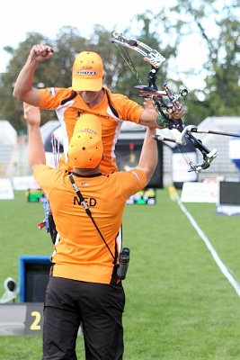 In the last set, TYACK started with a 10! SUNG scored a 9. The Australian had a 9. The Korean got a 10. Tied set provisionally. TYACK scored a last 10! SUNG needed to equal it to win the match. Anything less and the match would go to a one-arrow only shoot-off, closest to centre, where anything could happen. What suspense! SUNG drew his bow and scored THE 10. He tied the set (10-9-10 to 9-10-10) to win the match 6-4! SUNG became the double individual and team world champion from Ogden 2009 AND Legnica 2011!