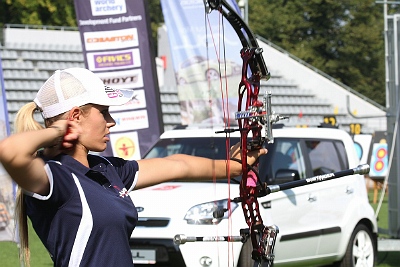 ARTEMOVA/CHERKASHNEVA/KOROBEYNIKOVA (RUS) are none less than the exact team that won silver at the World Archery Youth Championships Ogden 2009. Mexico was 3rd in Ogden, but none of their archers returned in the team for Legnica. Seeded only No. 5, GONZALEZ/JUAREZ/QUIROGA nevertheless adapted better to the windy conditions to take the best start. They led 50-46, 104-101