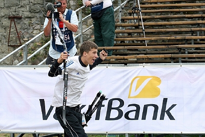 On the fourth target, the Finn started with two 5s, while the Swede had two 4s. The score was tied! It came down to the last arrow and there was not much time remaining on the clock. With 12 seconds left, DANIELLSON shot a 3. With 8 seconds left, LANTEE shot a 5 and became the new world champion! Final score: 60-58.