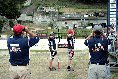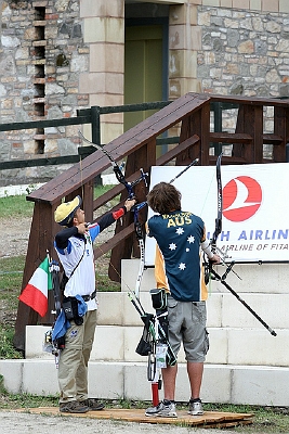 The match opened a long day of finals at the Visegrad Castle. Both these young archers had the whole venue for themselves, with fans, TV and medal pressure. They must have been nervous on the first target as MALLON started with 0-0-1 and SPANO with 1-2-1. The Italian had a 4-1 lead, but the British archer cut it down at 14-15 in the second target and tied it at 27-27 on the third end. In the last, difficult target, MALLON had 4-3-3. SPANO played in the team final the day before and unfortunately shot a miss for his lone arrow on this target. This time he did not let go his chance and shot 4-4-3 to clinch a well deserved bronze medal.