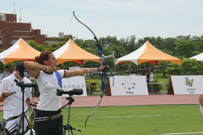 With a participation of 155 archers from 27 countries the 7th World University Championships beat the participation record for the FISU Archery World Championships (WUAC). In the previous edition in Slovakia in 2006 the number of participants was of 124 competitors. Competition City Countries Men Women Total Officials WUACH 96 Vaulx-en-Velin (FRA) 15 53 31 84 31 WUACH 98 Tao-Yuan (TPE) 16 52 36 88 35 WUACH 00 Madrid (ESP) 24 68 52 120 44 WUACH 02 Chon-Buri (THA) 17 55 32 87 45 UNIVER 03 Daegu (KOR) 28 85 60 145 65 WUACH 04 Madrid (ESP) 20 65 57 122 48 UNIVER 05 Izmir (TUR) 36 106 83 189 72 WUAC 06 Vinicne (SVK) 25 68 56 124   WUAC 08 Tainan (TPE) 27 88 68 156 64 Opening Ceremony   The competition will start tomorrow in the Chang Jung Christian University, located in the Tainan County in China Taipei. FISU Assessor, Mr Hisato Igarashi from Japan, declared “before even shooting one arrow, the event is already a success as the number of participants is the highest we ever had in a WUAC. We have to thank the organising Committee, Tainan County, the Sport University Federation in Taipei and the Archery Federation of Taipei for the enthusiasm and excellent work they have done to welcome all of us and organise this event in such a high level”. The competition was officially declared open by Mr Igarashi at the end of the Opening Ceremony, after several speeches from the authorities, the marching of the participants, some cultural performances and the FITA flag’s raising and FISU anthem ceremony.   The facilities are ready for the competition and have been tested today by the archers and inspected by the judges during the official practice sessions. Archers were satisfied with the field and facilities, but concerned about the weather forecast for the week. The temperatures are quite high (hot and damp) and rain appears from time to time which considerably increases humidity. “The entire field is a sauna… and shades, water-drinks, and keeping a constant level of liquid (water) in the body need to be taken into consideration by the athletes, officials and volunteers, if tomorrow they all want to perform well”, Juan Carlos Holgado, Chairman of the FISU Archery Technical Commission, said.      Wiebke Nulle (GER)Another factor that some archers are feeling is “jetlag”, with some teams travelling 19-20 hours and “enjoying” 6-8 hours of time difference with their respective countries. What’s more, the competition schedule is condensed, which does not help the archers stay focused on their performance.   The competition will start with a qualification round at 70 metres for all divisions. The individual eliminations will be shot on the following day. The event will end 10 July with the team competition and a mixed team event (recently adopted by FISU and in the process of being adopted in FITA events, as well). In this category, one man and one woman from the same country and same type of bow will team up and compete together. This format was introduced in FISU events during the WUAC in Slovakia in 2006 and tested in the FITA World Cup in Dover in 2007. Since then it has proved as one of the future successes of archery. Hit/miss targets (academic round target face) will be used for all team competitions.   The competition will be filmed and video streamed on the internet to allow fans from around the world to see images of the event and follow the competition (On-line Live Broadcasting Service). You can also find photos, news, results and videos on the official website: http://2008wuac.ctusf.org.tw/   Photos by FITA at UserFiles/Image/FITA_Photo_Gallery/WorldChamp2008/2008_WUAC/index.html   Juan Carlos Holgado FITA Comunication