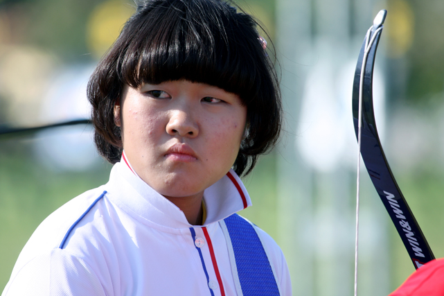 LIM brought another proof that women can be equal to men (or girls to boys) in archery, when she also scored 1377 points! OH Da Mee (KOR) reached the 2nd place with 1369 and CHEN Yeqing (CHN) was 3rd with 1360. Tatiana SEGINA (RUS) moved up to 4th place with 1351 and TAN Ya-Ting finished 5th with 1349. Polina RODIONOVA (UKR) was 6th and Mariana AVITIA (MEX) stayed on 7th.