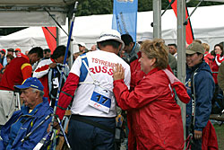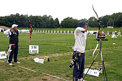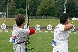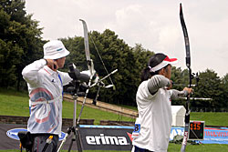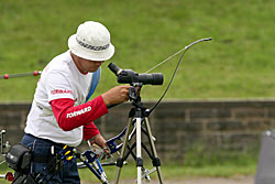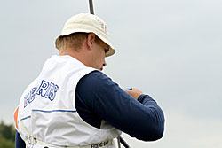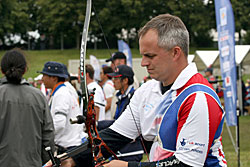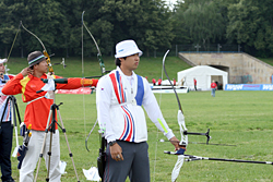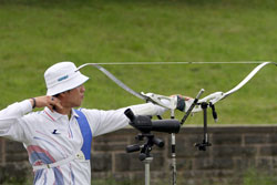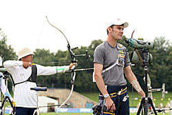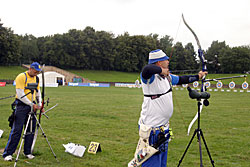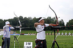 Besides World Championship medals, the Recurve archers were fighting to win places for next year’s Olympic Games in Beijing. For that, they had to try to be among the 16 best ranked archers in their category, but this will also depend on tomorrow’s team results.    1st round: Serrano (MEX) – Bodnar (ROU) Seeded no. 18 and bronze medallist at the recent World Cup in Antalya, Serrano had some ambition in Leipzig. A first round match is always difficult, especially with the tricky wind of Leipzig and Serrano was already behind 52-54 after six arrows. He lost two more points with his seventh arrow, when he shot an 8 in bad wind. His opponent took the opportunity to shoot quicker (in low wind) and had a 10. Serrano finished with X10-9-10, but that was too late... Bodnar beat the no. 18 seed 108-107! 1st round: Lee (KOR) – Cordero (PHI) The no. 1 seed Lee (KOR) was given a hard time in the first round. He was leading by only two points after six arrows, 54-52. However, Lee found his rhythm and his opponent could not keep pace. Lee shot X10-X10-X10-10-9-9 for a 58-point second end and a total of 112. Cordero could only shoot 7-8-9-7-10-X10 for 103 points. It is worth noting that an X10 means the archer hit the smallest part of the inner circle (6.1 cm only). Hitting the X10 is worth 10 points, but this can be decisive for the overall ranking of the archers.   2nd round: Lee (KOR) – Rai (IND) Lee’s life was made difficult again in this second round. This time his opponent was Rai. He shot 9-9-8-X-10-10 in the first end and was tied with Rai at 56 points. However, only the Korean could maintain the pace, scoring another 56 (9-9-10-10-9-9). Rai lost all chance of a win when he shot a 7 with his ninth arrow. Lee clinched victory by 112-108. 2nd round: Duenas (CAN) – Hristov (BUL) The young Duenas was facing Hirstov, an archer who can beat anyone on a good day. They started at a high level and were tied at 57 points after the first round. The second was more difficult for both of them. Duenas shot 8-9-7-9-10-10 for a total of 110 points. Hirstov looked set to win the match when he started his series with 9-X10-9, but his finish was disastrous with a 7-9-8. He scored 109 points for a cruel 1-point defeat. Duenas moved on! 2nd round: Ellison (USA) – Di Buo (ITA) Di Buo is a match-play specialist, but Ellison has been improving recently. This was another high-level match with Ellison starting with 9-9-9-10-X10-9 (56 points). Di Buo had 8-9-10-8-X10-10 (55 points) at that time. Ellison then took a 3-point advantage with his eighth arrow, scoring a 10 vs. Di Buo’s 8. Although Ellison did not finish extremely well with 8-8-9-9, this was still enough to mantain a 1-point victory!   2nd round: Ivashko (UKR) – Frangilli (ITA) This match was also tied after six arrows with 55 points for each archer. However, the Indoor World silver medallist, Ivashko, then turned in a superb display by shooting a 59 (10-10-10-9-10-10) to win the match by 114-105. The 2003 World Champion Frangilli was out, just like his team-mate Di Buo. Bad day for the Italians!     2nd round: Kuo (TPE) – Moriya (JPN) Kuo was seeded no. 3, but Moriya was the runner-up of the 2005 World Championships! The archer from Chinese Taipei had a 1-point advantage after six arrows (55-54). The Japanese then managed to come back in the second end with a strong X10-X10-X10-10-9-7 and tied the match at 110. This led the two archers to a shoot-off! They both shot a 10 with the first extra-arrow. Moriya finally had the last word and was victorious shooting another 10, whereas his opponent only managed a 9. 3rd round: Lee (KOR) – Duenas (CAN) It was the first time Duenas shoot again a Korean and he was actually leading after six arrows! Duenas had 10-10-10-7-9-9 (55) against Lee’s 10-9-10-9-8-8 (54). However, Lee had another of “his” 58 points in the second end that proved to be too much for Duenas who had 10-X10-8-X10-9-9. Final score: 112-111 for Lee.   3rd round: Tsyrempilov (RUS) – Badenov (RUS) The 2007 World Cup leader, Tsyrempilov, was playing his team-mate Badenov in this round. He took the advantage at the second arrow and was leading 55-53 at the halfway mark. The two Russians both finished strongly. Tsyrempilov had 9-10-10-10-9-9 and Badenov achieved 10-10-X10-10-7-9. It was eventually Tsyrempilov who prevailed 112-109.   3rd round: Furukawa (JPN) – Wunderle (USA) The difference againcame down to the first two arrows! Furukawa started with 9-10 while Wunderle had 8-9. For the rest of the match the two archers were really close to one another. Furukawa followed with 9-9-10-9, while Wunderle had 10-9-9-9. In the second end both archers shot consistently: six 9s each! Total score: 110-108 in favour of Furukawa.     3rd round: Ellison (USA) - Ivashko (UKR) Ellison lost it all with one arrow! He shot a 3 with his sixth arrow, probably running out of time in the first end. He was trailing 49-56 half-way and tried an impossible come-back, shooting 9-10-9-9-X10-X10 in the second end, but he could not fill the gap totally. Ivashko stayed solid and won 111-106.   3rd round: Marusau (BLR) – Velez Sanchez (MEX) After surviving a shoot-off in the previous round, Velez Sanchez was on the victory trail and faced Marusau. The archer from Belarus could not keep pace, scoring 49 in the first end. Velez Sanchez made it interesting, offering his opponent the possibility to come back, when he shot a 6 in the second end, but he finally won 105-103.   1/8 round: Lee (KOR) - Tsyrempilov (RUS) Tsyrempilov is shooting fantastically this year and is proved it one more time here in Leipzig. The Russian was trailing the no. 1 seed Lee by two points (54-56) after the first end. However, Lee, for once, dropped his guard in the second end and shot only 9-8-8-8-10-10 for a total of 109. Tsyrempilov shot a very good 9-10-8-10-10-10 and clinched the match 111-109!   1/8 round: Furukawa (JPN) – Ivashko (UKR) The no. 4 see