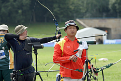 1/4 final: Xue (CHN) – Im (KOR) After defeating Petersson in the previous round, Xue had another difficult task ahead of him. The Korean Im shot a superb 58 in the first two ends. Although Xue was not shooting badly, he could only shot 56. The third end was more difficult with the wind getting stronger. It was decisive in this match. Xue scored 9-7-8, while Im got 8-9-9 to increase his lead to 84-80. The last end did not change anything and Im won 112-107. He will represent Korean in the semi-final!     FITA Communication