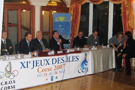 After the official presentation of the Islands Games at the Palais des Congrès of Ajaccio, the Eleventh Edition was launched in High Corsica on Friday 15th December, 2006. The members of the local Organizing Committee, led by C.R.O.S President Pierre Santoni explained the main lines of CORSICA 2007. Animated by Jean-Valère Bordenave, Competition Technical Coordinator, the presentation pleased the numerous public, essentially composed of representatives of the insular sports movement and volunteers.