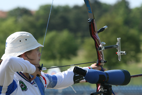 Impressive during the qualifications the Chinese archers could not confirm in match play. Number 1 seed, Jailing Quian failed in quarter final vs Lionetti (ITA), seeded 25 (104 – 108 pts). The Italian will play Galinovskaya (RUS) in the semi. The Russian was almost shocked in the second round. After a poor game, she was tied at 97 pts with her opponent after 12 arrows. Fortunately she found her archery skills back during the shoot-out. Number 3 seed, Yu Hui (CHN) lost against Schaefer (GER) in the second round. The German then lost to Frigeri (ITA) who reached the semi despite her 46th seed ! Finally, 2nd seed Berezhna (UKR) could not beat her teammate Lobzhenidze in the second round as well. She lost in the sudden death shoot-out. Unfortunately for her, Lobzhenidze could not make it all the way, losing to Nasaridze (TUR) 104-105 pts in the quarter.