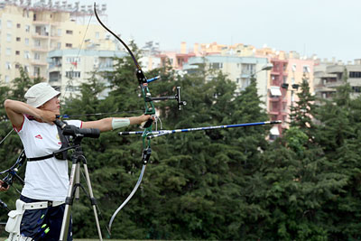 The first match is many times the most difficult. It starts early morning and it is difficult to get loose immediately with the first arrows. The first round in Antalya gave cause for a few upsets. The no. 7 seed Schuh (FRA) could not achieve more than 102 points, which was clearly not enough versus Milanovich (BLR) who earned 110. This is disappointing for Schuh who has been shooting really well in qualifications on Tuesday, even breaking the French record. Bronze medallist at the last World Cup in Varese, Marusava (BLR) could not go pass the experienced Lobzhenidze (UKR). The Ukrainian then went on to beat no. 8 seed Banerjee (IND) in the second round, before losing to the no. 9 seed Haidn Tschalova (GER). The German, who was borne Russian, had been previously close to elimination, winning a shoot-off against Borodai (RUS).
