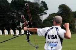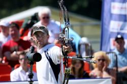 Bronze Medal: Gellenthien (USA) vs Grimwood (GBR) The two Anglo-Saxons face each other for the bronze medal of the Compound Men category. Gellenthien starts more consistently shooting a triple 9 (27). Grimwood, with 8-8-9, is trailing by 2 points (25). The local recovers from 1 point in the second end shooting 29 out of a possible 30. Gellenthien scores 9-9-10 and still leads (55-54). The American makes the difference in the third end with a perfect 30! He increases his lead to 3 points after Grimwood shoots 10-9-9 (85-82). Gellenthien controls the last three arrows and clinches the bronze on the final score of 114-111.