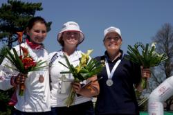 Bronze Medal: Goncharova (RUS) vs Hunt (GBR) Goncharova starts first on target 1 and she shoots a 10. Her opponent from Great Britain scores a 9 and continues with 8 and 9 for 26 points after the first end. Goncharova clinches this series with 9-10 and an intermediate total of 29. The Russian is more experienced and her arrows are more grouped. She shoots 9 and 10, and though her sixth arrow hits the 7 ring, she increases her advantage to 5 points (55-50). Hunt shoots a triple 8 in this end. With only three arrows left, the young Briton is now trailing by 6 after shooting 8-10-9 (77) in the third end and her opponent 10-9-9 (83). This is too much of a disadvantage to recover from and the match finishes on a victory and a bronze medal for Goncharova 112-105.