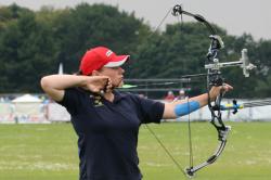 The two Anglo-Saxons face each other for the bronze medal of the Compound Men category. Gellenthien starts more consistently shooting a triple 9 (27). Grimwood, with 8-8-9, is trailing by 2 points (25). The local recovers from 1 point in the second end shooting 29 out of a possible 30. Gellenthien scores 9-9-10 and still leads (55-54). The American makes the difference in the third end with a perfect 30! He increases his lead to 3 points after Grimwood shoots 10-9-9 (85-82). Gellenthien controls the last three arrows and clinches the bronze on the final score of 114-111.