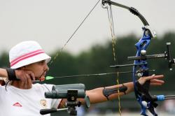 The Swedish lady is the first to take the field today. Shooting first on target 1 she scores a 9. Goncharova opens with an 8. Ericsson continues with two 10s and closes the first end with 29 out of a possible 30. Her Russian opponent scores a double 9 and trails by 3 points (26). In the second end, Goncharova starts first, as she is behind, and shoots a 10. Ericsson scores a 9 in a tough wind. Goncharova continues with two 10s, while Ericsson shoots two 9s. Thanks to this perfect end, the Russian recovers and ties at 56. In the third end, both archers shoot two 10s and a 9. They are still tied: 85-85. Ericsson shoots first in the last end (original order, as the match is tied) and scores a perfect 10. Goncharova also with a 10! The penultimate arrow is decisive: the Swede gets another 10, while her opponent scores only a 7. With a final 10, Ericsson clinches the match and will be shooting for the gold later on. Final score: 115-110.