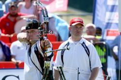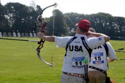 Gold Final: USA vs Great Britain Two Anglo-Saxon teams are fighting for gold this afternoon in Compound Men! It is team USA that takes the line first, and Binger starts with a 10, Wilde L. with 8 and Gellenthien with 10 (28). Forbes then opens for Great Britain shooting 9, whereas his team-mates Franklin and White score 10 and 9, respectively. The Americans continue with 9-9-10 (56) and take a 1-point lead versus the British who score 7-10-10 and an intermediate total of 55. They double their advantage after 9 arrows: 84-82. Team GBR with a perfect 10-10-10 series and Team USA with 10-9-10! The local team recover 1 point is close with 112-113. Gellenthien and fellow countrymen take advantage of the third end to take a more comfortable advantage of 4 points after shooting five 10s and a 9. Despite six 10s in a row by Franklin, the British are behind by 168-172. The local team finishes with a 9-9-10-9-9-10 series and 224, but this is not enough to beat the no. 1 seeded Americans who close the match with 10-8-9-10-10-10 and 228 points out of a possible 240. USA wins gold and Great Britain takes silver!