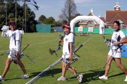 Venezuela takes an early, important lead with 8-9-10-10-10-9 (56) in the first end of this semi-final. The host team cannot do better than 7-8-10-9-9-8 (51) and trail by 5. Flores, Guedez and Montes increase their advantage at the half-way mark adding 54 points to their total, while their opponents score 52 (110-103). The gap increases to 10 points with six arrows to shoot: 165-155. Crang, Hunt and Parker finish the match with 8-8-10-10-9-8 and concede defeat to the Venezuelan girls who score 9-7-10-9-9-9. Final score: 218-208 in favour of Venezuela.