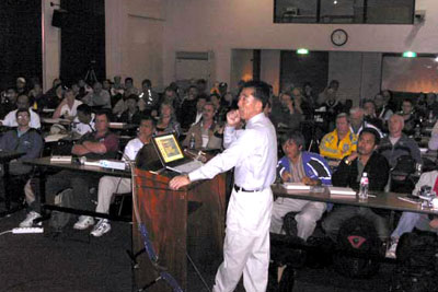 The first to speak was the experienced coach Mr Kim Yung Tak who lectured on archery technique. He was followed by the famous champion Mrs Eun Kyung Lee who spoke on the preparation for the Olympic Games.