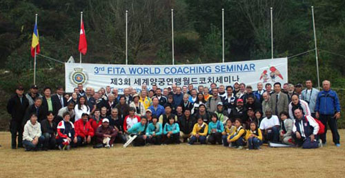 The 3rd FITA World Coaching Seminar for Recurve Archery was held from 22 to 26 October 2007 in Geosang, South Korea. Mr Kim Yung Tak and Mrs Eun Kyung Lee were the first lecturers at this seminar which welcomes an audience of 75 coaches from the five continents.