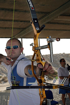 This afternoon the finalists of the Archery World Cup 2007 had a second opportunity to practice on a practice field set up for them in a shooting club. There we met Briton Al Wills - one of the contenders in Recurve Men - and asked him a few questions.