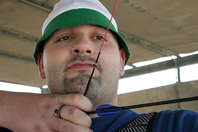 This afternoon the finalists of the Archery World Cup 2007 had a second opportunity to practice on a practice field set up for them in a shooting club. There we met Italian Michele Frangilli - one of the contenders in Recurve Men - and asked him a few questions.
