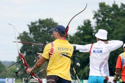 Semi-final: RUBAN Viktor (UKR) - PARK Kyung-Mo (KOR)Ruban needed to win this match to go to the World Cup Final in Lausanne, while Park was already qualified. The first end was tied at 27 but then Ruban took the lead, 56-53. However, Park struck back with 9-X10-10, while Ruban had 8-10-9. Ruban still led 83-82. Park kept going with 9-X10-X10 and Ruban 9-9-X10. The match was tied at 111-111. The two first shoot-off arrows were 9s. We needed a third arrow, closest to the center. The wind rose. Park only shot a 7. Ruban didn't shake and scored an X10! Ruban will shoot for gold in Boe on Saturday night and will to go the Final in Lausanne in September!