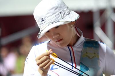 Gold Medal: PARK Sung-Hyun (KOR) - YUN Ok Hee (KOR)In this match, number 2 (Yun) faces number 3 (Park) in the world! Both archers are qualified for the World Cup Final this year. Last time they shot against each other in Antalya, Yun broke the World Record at 119 pts.