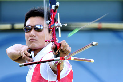 When Cupid’s arrow strikes… PARK and PARK’s confessions Lausanne – 26 September 2008 PARK Kyung-Mo    Over the years they have shared more than mere first names. What started as an exchange of insight to master the art of hitting the bulls-eye, gradually developed into a chemistry that was beyond the realms of targets… And when the two of South Korea’s ace archers PARK Sung-Hyun and PARK Kyung-Mo announced plans to share their lives, it did not come as a big surprise to those who have closely tracked the champion athletes.   “To tell you the truth, people around us announced our marriage even before we could make a formal announcement,” said PARK Kyung-Mo, who is in Lausanne to compete in the Archery World Cup Final to be held on Saturday.   But the meek Korean was not complaining. “That’s just the love of people. We athletes are indebted to our fans for their love and affection,” said Kyung-Mo.   After a formal courtship that only started in the autumn of 2007, the two stalwarts of world archery decided to tie knots after the conclusion of the Summer Games in Beijing.   “We are getting married on 6 December in Seoul,” said Kyung-Mo.   The similarity between the two is uncanny, even in terms of performance. While PARK Sung-Hyun lead Korea to a sixth straight gold in women's team final and the individual silver in Beijing, PARK Kyung-Mo achieved the same with the men's team. The former world champion guided Korea to a third straight team title alongside clinching the individual silver medal.   On being asked about how this tale of love found its way in the surroundings where heart and mind are required to be set only on the bull’s eye, they say:   “Well, that just proves that even at the highest level it is possible. We kept the two things separate from each other. While training it was only about fine tuning the skills and while dating we consciously tried to avoid talking about archery, and so far we have managed to do that quite successfully,” said Kyung-Mo.      PARK Sung-HyunAnd Sung-Hyun, who so far was just listening to the conversation, nodded affirmatively. “It’s important to draw the line between professional and personal life,” she added.   “When I joined the national team in 2001, Kyung-Mo had also made a return to the national team after a hiatus of five years,” she recalled.   “We got along very well from the outset and we used to travel a lot together to different world championships. We used to discuss a lot about our games and techniques and gradually we got to know each other,” she added.   So when did this turned into love? Now it was time for Kyung-Mo to make a confession. “I have liked her for a long time now but I could only propose last year,” said the Korean, who has been one of the most consistent top draw archers. He won the individual world championships in 1993 at only 18 years old and also was the winner of the World Cup Final title in 2006.   And it is this reliability that Sung-Hyun fell for. “He is very dependable, besides being kind and caring. In many ways he just complements me,” she said. And the admiration is mutual.   “She is not just a beautiful face, but she has also got a beautiful heart. She is very kind and respects everyone and that is a virtue we value a lot in Korea,” said Kyung-Mo.   The duo will be the first gold medallists in the country's history to marry each other. And when asked about what can be expected from their offspring, Kyung-Mo quipped with a wink: “Back home people are already saying that our children will be ‘Gods of archery’.   We cannot agree more…   Aditya Kumar FITA Communication