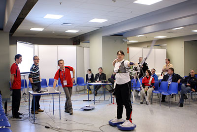 “Today we will show you something that you cannot see with the naked eye,” Mr. Mariusz STRZECHA said as an introduction. The Polish Archery Knowledge Team actually presented to the participants of the Indoor World Championships 2009 some innovative technologies that can be used to improve shooting.STRZECHA presented a two-part platform that measures the pressure and balance of both legs when an archer is shooting. Demonstration was done with Polish elite archers such as Justyna MOSPINEK and Rafal DOBROWOLSKY, as well as a member of the junior Polish team and a beginner in archery. One could see that the elite archers have more control on their balance than the others. The platform transmits the data to a computer that very precisely shows the variations during the aiming and the whole shooting sequence. The data are shown on easy-to-use graphics that can help an archer improve its posture. The Polish Archery Knowledge Team also developed an unstable platform that allows practicing one’s balance by playing computer games. Something like the Nintendo Wii but with more difficulty to master the balance! Finally, STRZECHA also showed a sensor that can be put on the wrist, elbow or even the bow hand of the archer. It measures in three dimensions and with a lot of accuracy the acceleration and movements of an archer’s arm when he releases an arrow. This can help an archer adapt his release for more accuracy on the target. The overall presentation shows that nowadays details often make the difference in sports. Technology can help sports. However, it is necessary that the archers and the coaches use it wisely to relate the data into practical improvements and exercises for the archers. Didier MIEVILLE FITA Communication