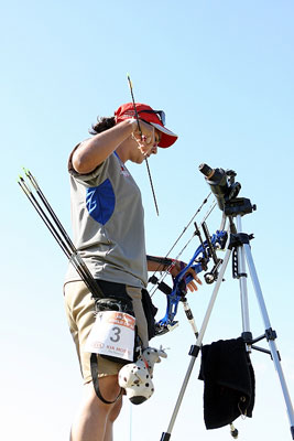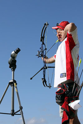 In quarterfinal, the experienced TRILLUS made a huge mistake, shooting one arrow on the wrong target (!) Although he led 29-26 after three arrows in his match against HERNANDEZ, the Canadian scored a miss (0 point) at his sixth arrow. Despite a 6 at his fourth arrow, his opponent from El Salvador took a 3-point lead at the half-way mark (51-48). A perfect 30-point third end was not enough for TRILLUS to recover and he conceded defeat by one point, 106-107. Two other upsets in this round with no. 6 ELZINGA (NED) defeating no. 3 DAMSBO (DEN), 116-114, and no. 7 HOFER (SUI) beating no. 2 R. WILDE (USA), on the same score. This is the first time that the Swiss has beaten the American in an outdoor competition.