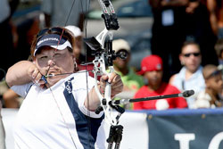 TONETTA photo: I am not so happy with my shooting. My technique was fine but I could not manage to group my arrows in the target. Poland – Silver Medal It was very difficult because of the wind. It was coming up and down all the time but we are very happy with our silver medal, since this is the first stage of the year and we have a very young team of 22 and 25 year old archers. We got a great result. Great Britain –Bronze Medal OLIVER: It was my first team event and I was really nervous. I am happy we did well, it was a good match. WILLIAMSON: The venue was very different from last year and the wind started to show up at the beginning and remained variable throughout the match which added a degree of difficulty. BURGESS: The whole team did really well with a calm and positive atmosphere. Hopefully the men will win gold later on! Compound Men USA – Gold Medal L. WILDE photo: It was great! The venue is very beautiful and I heard much less windy than last year. How does the US Team plan to dominate all team events of the World Cup you participate in? I believe that we have so many outstanding compound archers in the US that back home we just get a high level of training by shooting against each other. We could easily bring 18 archers, have six teams and I would bet that we get all six first places. Other countries also have very good archers, but they may have only three or four and that makes the difference. Canada – Silver Medal PARENTEAU: It was my first team event even though I am the oldest archer in the competition (54 years old). I trained a lot for this event and I guess I came very well prepared. I shot five 10s and one 9 and that is excellent. I am very happy with our result and I may participate in other World Cup stages this year. El Salvador – Bronze Medal We are so happy! We took revenge from last year as we were also shooting for bronze against Mexico but they won that match. The field is fantastic and the crowd is improving year after year! Compound Women USA – Gold Medal We were so nervous (showing their hands still shaking after the match)! For sure this final was much better than last year, as there was no wind and the crowd was awesome.