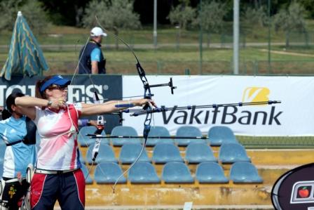 There was only one 1/8 elimination match in the compound women’s category. After a hard fought match, Spain beat Finland 220-215.