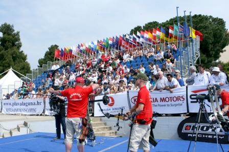 The last end for India was quite stressful as the last arrow slipped from the arrow rest with only 5 seconds were left on the clock… it landed on the 5 ring. Ukraine confirmed their win with a great 58-point end. Bronze went to Ukraine with a final score of 212-197.