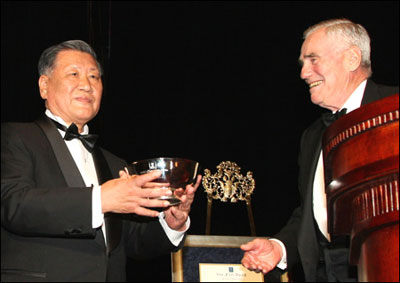 FITA Honorary Vice President and Hyundai-Kia Automotive Group Chairman Mr CHUNG Mong-koo received the 2009 James A. Van Fleet Award from Mr Donald GREGG, Chairman of the Korea Society, a U.S.-based non-profit organisation for Korea-U.S. friendship.