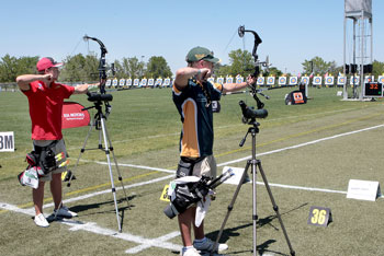 Levi CYR (USA) was the star of the first round. At least his numerous fans made it feel like it. He prevailed over Alexander GALYANOV (RUS) in a good match: 58-57, 113-109. James HIRTH (AUS) turned around his match against Daniel CASTRO (MEX). The Australian trailed 53-55 but won 108-106. There was an Indian dual in this first round. K. N. MANGANG beat his teammate Sanjay SWANSI 55-52, 109-108. Another Indian had a tough match. Arjun RAO was tied with Corentin MOEMARS (BEL) 110-110. Then they both shoot an 8 in the first arrow of the shoot-off. After that that RAO prevailed with a perfect X10, compared to a 9 from MOEMARS. Finally, there was an Australian dual. Adam ASHLEY led Keiran ENGLISH 56-54. ENGLISH tied it at 109-109, but ASHLEY won the shoot-off 9-8!