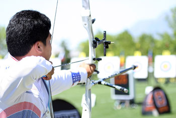KIM was very strong again in the 1/8 elimination round, defeating Mitch DIELEMANS (GER) 58-56 and 114-110. The first end was close in the match between Mangal HO (IND) and PREVOST, who were tied at 54-54. In the end the Frenchman shot better and won, 111-108. Hector Antonio SMITH (MEX) trailed Dmytro MARTYNOV (UKR) by 1 point, 49-50, but managed to come back and win the game by 1 point, 101-100. KIRKIN continued his winning ways with an easy victory over Atte JAUHIAINEN (FIN) 55-51, 106-96. Turkey’s Osman ESKICI was a surprise winner against the No. 2 seed PARK Yeonsu (KOR), whom he beat 110-103.