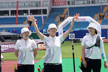 Korea increased its lead with ends of 37 and a perfect 40, while China shot 36 and 37. The Koreans led 114-106 and concluded with an impressive X10-X10-10-9 to clinch gold, 153-141!