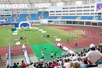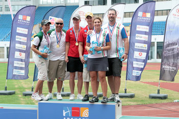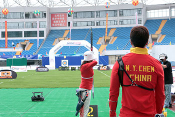 The weather conditions were still good this morning and fans came in high numbers, again showing their support for the Chinese teams as they did during the Olympic Games! The show was shown on live television in Shanghai. Recurve Men Gold Medal – Korea vs France Korea shot 229 yesterday but France was not far behind on 226. This match was promising. Both teams shot a bit too much on the left in the first end. GIROUILLE caught a liner 10 with one second to go but France trailed 53-55. Then France shot X-8-8-9-8 and GIROUILLE again caught a 10 in the last second! Korea was steady with 10-10-8-9-9-9 and increased their lead to 110-106. Although the weather is still quite calm this morning, the wind is picking up from time to time. This created some trouble for both teams in the third end. France had 4-7-9-9-9 and X10 for GIROUILLE with, well, one second to go! Korea shot 8-X10-7-9-9-8, increasing their lead to 161-154. GIROUILLE had a little more time in the last end. He shot the last arrow for France with two seconds left but only caught an 8 this time. Not enough to put pressure on the Koreans. They did not miss the gold in the last end and clinched it, 216-207 Today we had the top archer Crispin DUENAS (CAN) joining us for the commentary. He gave us his opinions on the matches, “The Crispin Corner”: The wind affected both teams but obviously France a bit more than Korea. VALLADON and AUBERT are not fast shooters and this did not give much time for GIROUILLE. The advantage of that actually is that he focused on his shot and didn’t second-guess the wind. At the same time, this leaves very little margin for errors. On the other hand, the Koreans seemed very much in control of their shots and their time. Bronze Medal – Spain vs Mexico Mexico has more experience on final fields, especially Juan Rene SERRANO who was 4th at the last Olympic Games and is shot first in the line-up. The Mexican had the best start and led 51-47. SERRANO shot a 6 to start the second end and his teammate VELEZ SANCHEZ could not do any better right after him! MARIN COELLO compensated a bit with a 10. Then they shot 9-8-10 in the same order. Spain took advantage of it to cut the deficit to one point, 99-100. Both teams had to go deep in the clock in the third end. Spain shot 9-9-9-9-8-7 and finished with two seconds left. Mexico had 9-8-8-8-9 and a 10 with one second left! They still led 152-150. The Spanish archers could not put much pressure on the last end, starting with 8-8-8. Although they finished with 10-9-10, the Mexicans were solid with 9-9-7-X10-X10-8 to clinch bronze 205-203. Crispin’s corner: Both teams had mistakes, but Mexico was a bit more consistent. They had a better group and that was just enough to win the match.