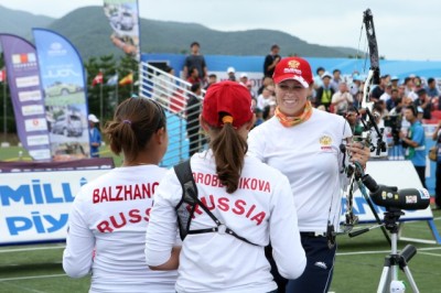 Compound WomenAlbina LOGINOVA (RUS) It is great to win the team gold after the individual silver in 2007. I am especially happy for my young teammates! I am used to TV, photographer and a large crowd from the world cup, but for them it was maybe the second time only. Korea gave us a chance when they did not have time to shoot the last arrow of the third end, but we followed through with a lot of 10s! It is great because it is the first medal for a compound team for Russia. The second one is coming with the men by the way. I will also try to get another individual medal tomorrow.