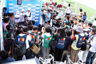 Are you ready for tomorrow? I hope I can do a great job tomorrow, too. I’ve got the gold medal in 2007, but I failed to get it in 2003 (redaction note: IM took silver). Many people are encouraging us here, and I am in good shape. It has been great and comfortable to have matches in my home country, Korea.