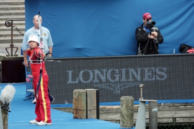 GIROUILLE seems to be used to shooting with very little time remaining, as he shoots last when competing with the French team. Today the archers had only 20 seconds to shoot each arrow, much less than the 30 seconds they usually have.