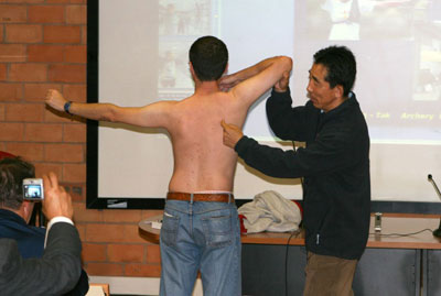 KIM Hyung-Tak from Korea, one of the most famous archery coaches in the world, has recently published a book in which he provided countless useful elements. After a presentation about Korean archery and his own experience in the sport, coach KIM showed participants how to analyze the shooting form of an archer using a software created specifically for physical movement and a high-speed video. Then Mr. KIM presented the "basics archery skills", as he calls them. This last session of the day went over the time limit but nobody complained, since the lecture was so captivating!