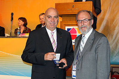 Photo: Mr. BAGATIR (left) received the Silver Plaquette at 2009 FITA Congress in Ulsan and suddenly passed away on 6 December 2009