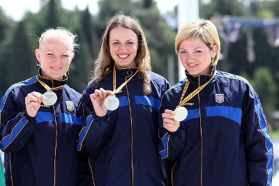 Belarus had easily defeated the Ukraine in the 1/8 elimination round in Ulsan. Here in Porec the Ukraine had a disastrous start at 5-6-9-5-8-9 to trail 42-52. It seemed the wind was really affecting the archers. The Belarusians suffered more in the second end, shooting far from their regular level at 7-4-4-6-7-8. The Ukrainian archers shot 10-7-9-10-6-6. After trailing by 10 points, they came from behind to lead by 2 points! Both teams became more comfortable shooting in the next end. Belarus shot 8-10-x10-9-8-7 and Ukraine 6-10-8-9-x10-8. The match was still very open with the Ukraine leading 141-140. The rain stopped as archers entered the last end. Belarus shot first and with 9-10-9-9-10-10 put the pressure on the Ukrainians, who didn’t want to let the medal go! They shot 9-8-9-10-9-10 to tie at 197-197. The Ukrainians shot 10-9-10, and an 8 from the first Bielorusian archer gave them the gold.