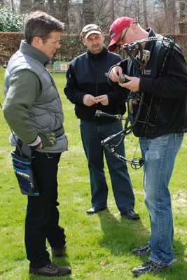 We were shown into the garden where coffee, biscuits and mineral water were served and we were made to feel welcome. The equipment and tools we had brought with us, including a bow press, were unpacked and everything made ready. We were of course excited and nervous but need not have worried—everything went smoothly. The equipment was perfect, the Crown Prince was quick to learn and before we knew it, two hours had flown by in pleasant company, during which the Crown Prince demonstrated that he was a competent archer. On the way home, we counted up how many arrows had actually been loosed and reckoned that the prince shot somewhere between 80 and 100 with a bow set to 65 lbs—pretty impressive. It was obvious that the prince is in excellent physical condition and is an active sportsman, as he has demonstrated by becoming a navy frogman (an élite unit in the Danish defence forces) and taking part in the gruelling Sirius dogsled patrol across the Greenlandic ice cap. I would also like to express my respect for the way he handled the equipment, and how quickly he was able to find the range. And as an indication of how good an archer he is, his first try-out shot hit the bull's-eye.